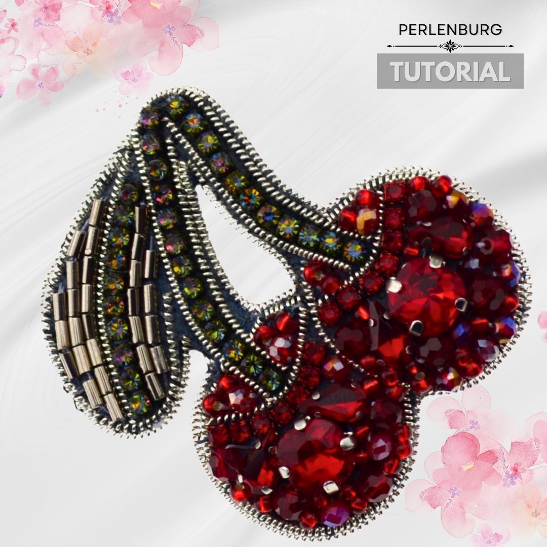 Auf ähnliche Weise nähen Sie entlang der Linien die Perlen, Rocailles und Strasssteinketten fest.