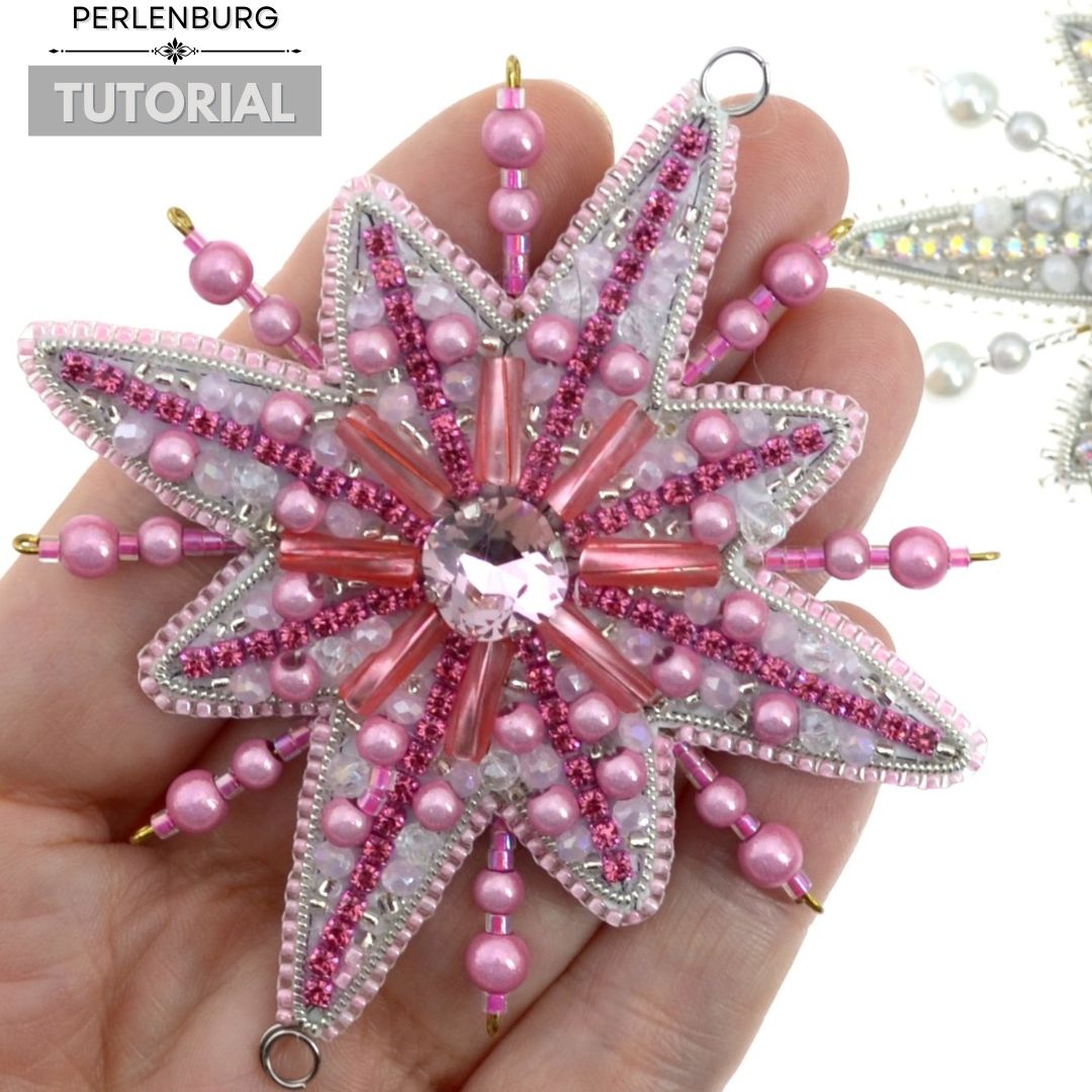 5. Nähen Sie entlang der Linien die Perlen und Rocailles fest.